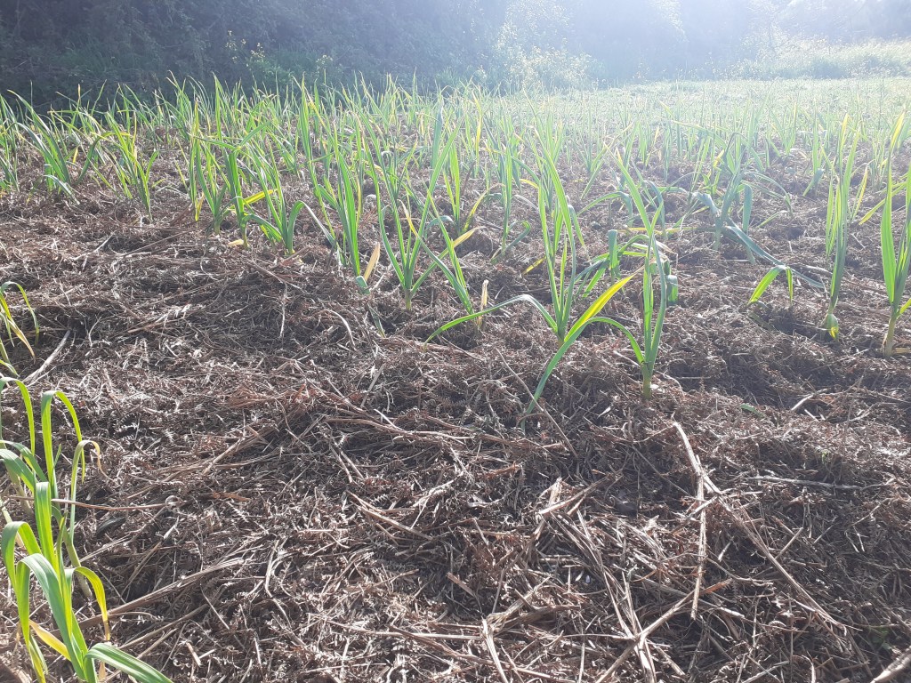 Yesterday was our work day in the garden. It was a glorious, sunny spring day, with the willow trees along the watercourse, first to awaken from their winter slumber, gently shaking their new cloaks of green. Over these past few years of working on the land, I’ve learnt to pace myself and take care of my body, so we decided to start with the tough work and gradually ease off through the day. So, the morning was spent raking up more of the glorious bracken mulch (I still can’t stop smiling about this!), followed by weeding (and mulching of course) some more of the garlic patch, finishing off with planting some seeds into seed-trays for the cold-frame.